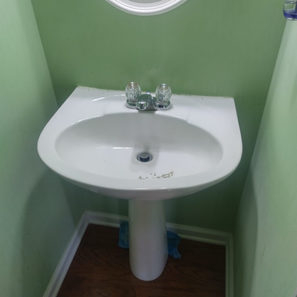 Tired of your Pedestal Sink? Admit it. Pedestal sinks were cool once. Now you want storage…not cool. We can help with that! Here is one transformation that took under a day to accomplish.